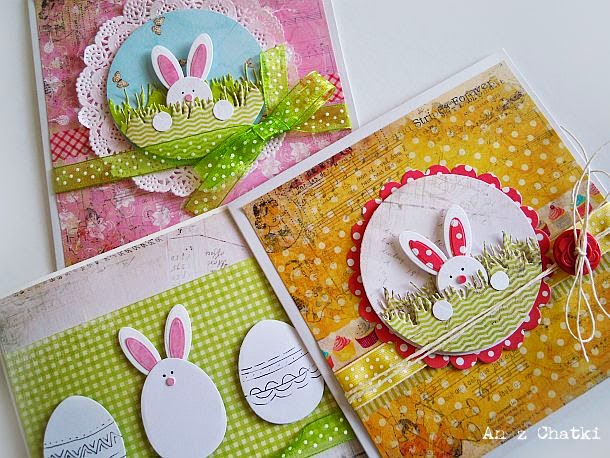Urzekły mie te pocieszne zające i postanowiłam je wykorzystać w kartkach świątecznych.